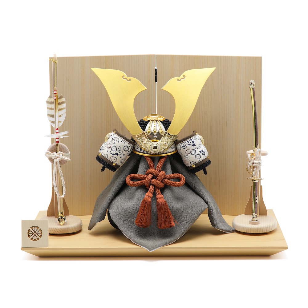 存在感のある兜を主役にシンプルで洗練された兜飾りに仕上がっています。