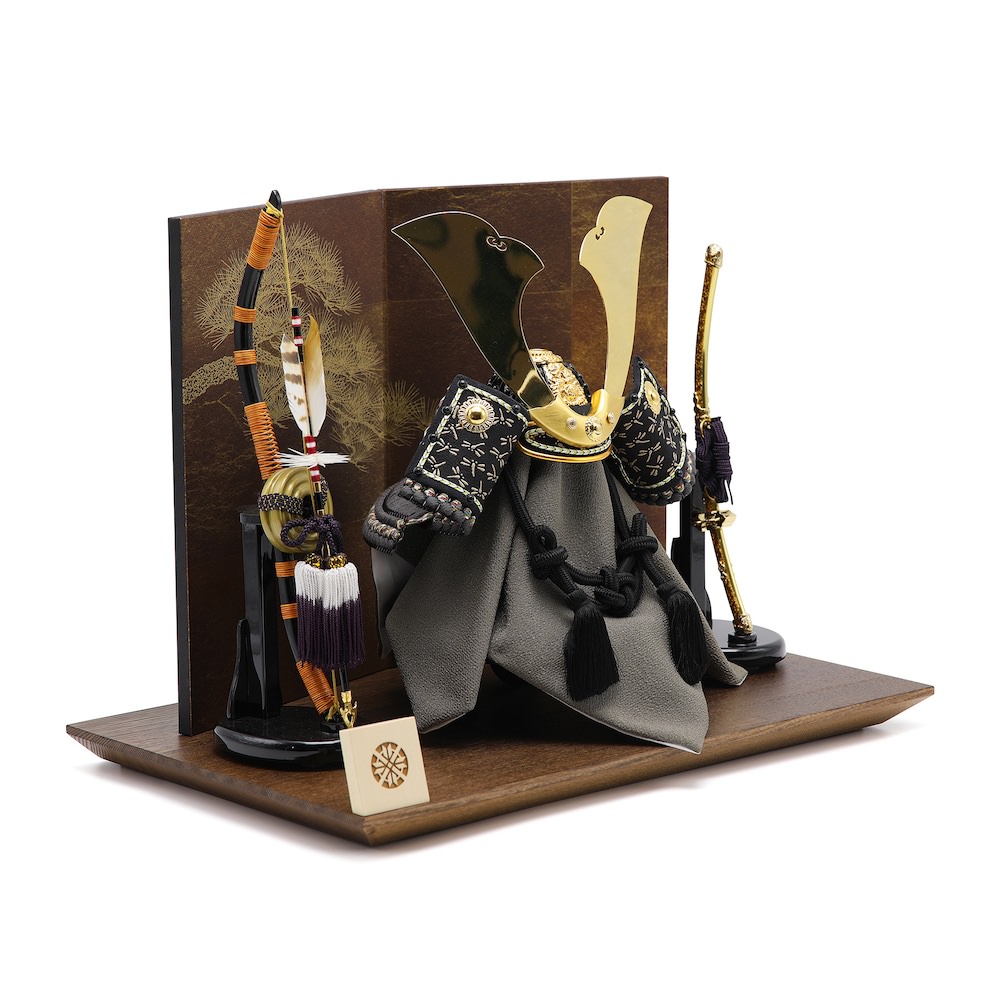 端午の節句らしい弓太刀は、黒塗りに橙色が差し色の工房真の兜向けに製作したオリジナルの品、国内最高峰の品質の品です。弓太刀には「魔除け」の意味、「社会が平穏であるように」という平和への願いが込められています。