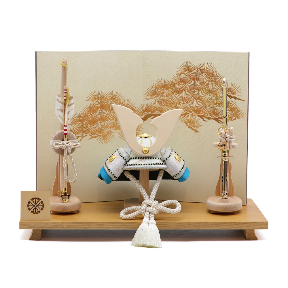 端午の節句らしい弓太刀は、兜や飾り台に合わせて白木で製作した洗練された品、国内最高峰の品質の品です。弓太刀には「魔除け」の意味、「社会が平穏であるように」という平和への願いが込められています。