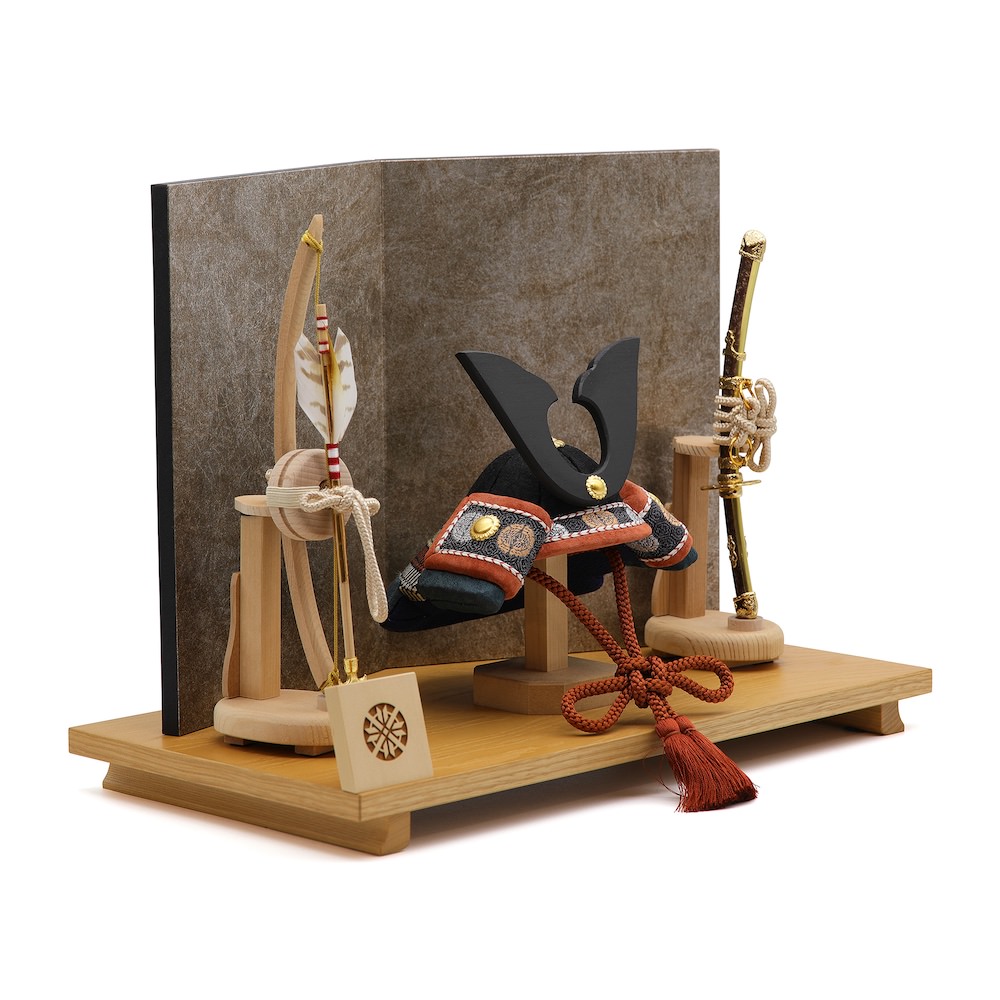 端午の節句らしい弓太刀は、兜や飾り台に合わせて白木で製作した洗練された品、国内最高峰の品質の品です。弓太刀には「魔除け」の意味、「社会が平穏であるように」という平和への願いが込められています。