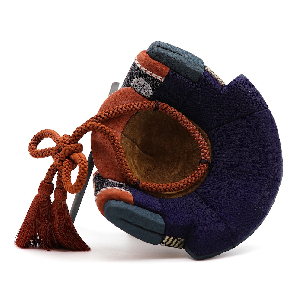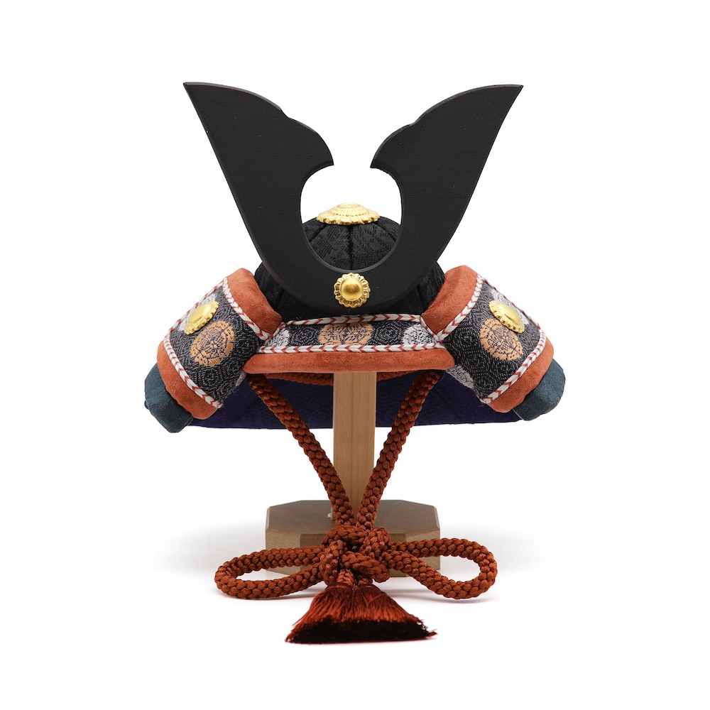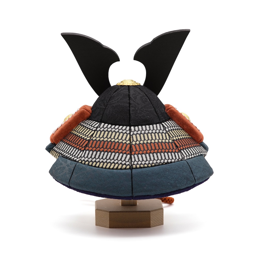 落ち着いた配色から品格を感じる木目込み兜「楓」、渋さを感じるくすんだお色の組み合わせは現代的でもあり、古来からの日本らしい美しさを感じます。どんなインテリアにもよく似合うデザインが魅力です。